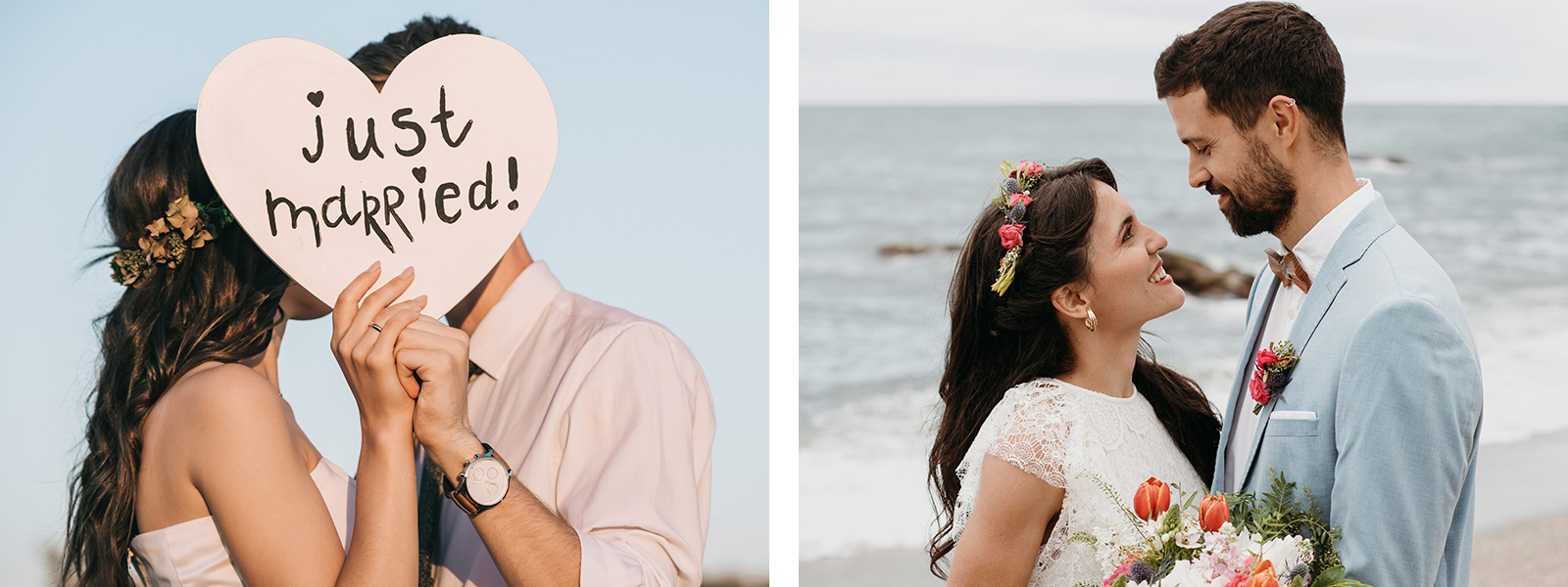 - The bride wore a flowy, off-the-shoulder gown made of soft tulle, with floral embroidery cascading down the skirt. Her hair was loosely curled with tiny wildflowers tucked into her braid, and barefoot sandals gave her look a grounded, earthy grace.